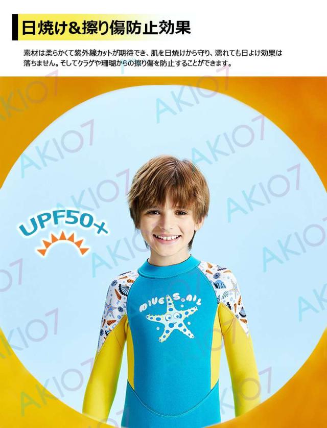 【UVカット・怪我防止】日焼け止め(UPF50)機能があり、子供の弱い肌を強い日差しから守ってくれます。肌に密着して水を防ぎ、水の抵抗を減らします。