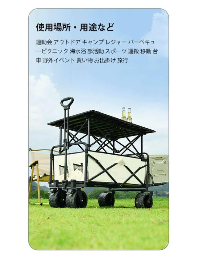 キャリーワゴン アウトドアワゴン 後ろ開け 折りたたみ キャリーカート キャンプカート 頑丈 ワイドタイヤ 軽量 コンパクト 大型タイヤ 耐荷重200kg 大容量180L 大容量 拡張機能