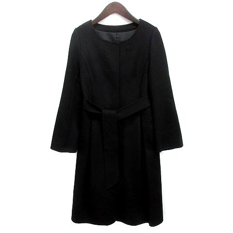 【中古】ストロベリーフィールズ STRAWBERRY-FIELDS ウール カシミヤ ダブルフェイス ノーカラー コート ベルト付き ブラック 黒
