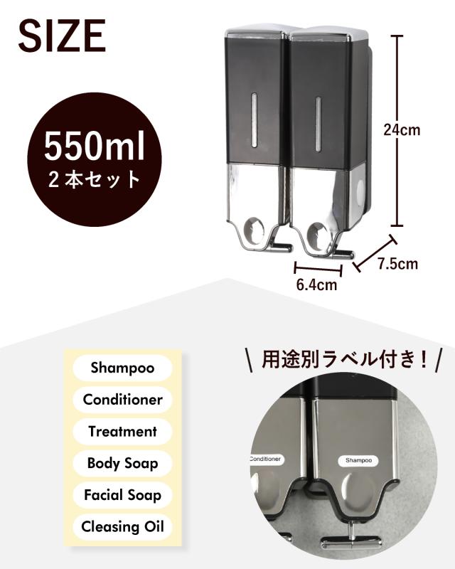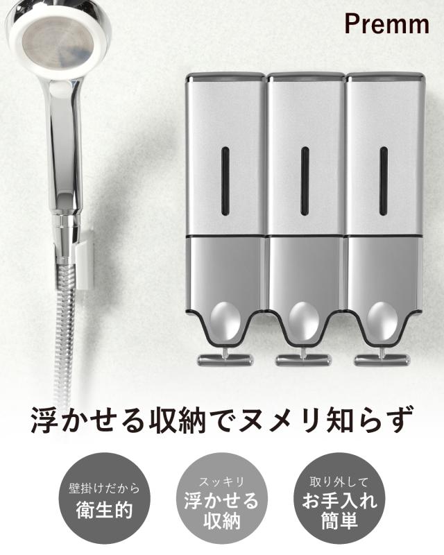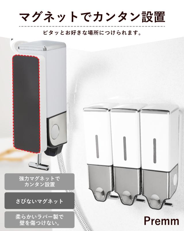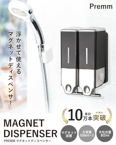 PREMM 公式 ディスペンサー マグネット シャンプーボトル シャンプーディスペンサー 壁掛け式 (大容量 550ml ×2本)【レビュー投稿で1年保証】【累計10万本突破!】
