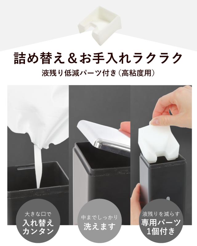 容量は1本あたり約550mlで、一般的な詰め替えパックがすべて入るサイズです。