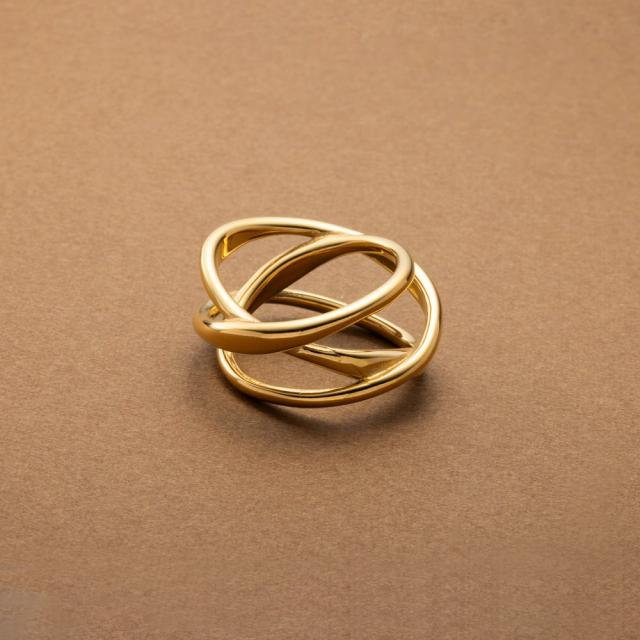 【ゆうパケットOK】 ステンレス製 リング 指輪 金属アレルギー つけっぱなし サージカルステンレス レディース 3連 レイヤード風 ドローイングライン 変形 クロス ボリューム 大人 ゴールド シルバー ピンクゴールド outlet