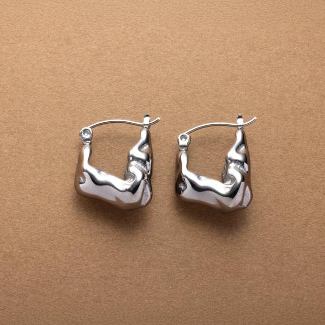 【ゆうパケットOK】 ステンレス製 ピアス 金属アレルギー つけっぱなし サージカルステンレス レディース メタル 変形 歪み 凹凸 クロッシングピアス キャッチレス 大人 シルバー outlet
