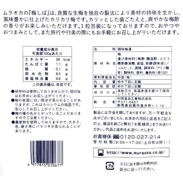 ムラオカ 梅しば 大袋 410g メール便(代引き不可) 個包装 カリカリ梅 赤玉