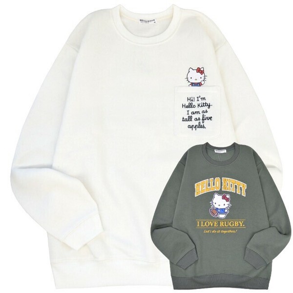 A柄はポケット付きトレーナー、ポケットの中にプリントされたキティがポイントです。