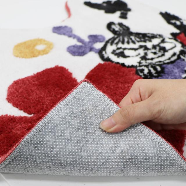 糸の材質や毛足の長さに変化をつけ、キャラクターを立体的に表現しています。肌触りも楽しめるマットです。