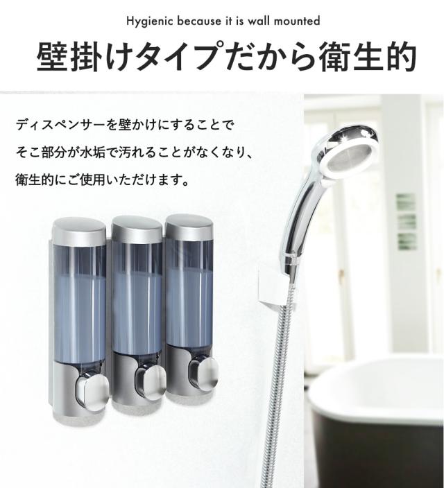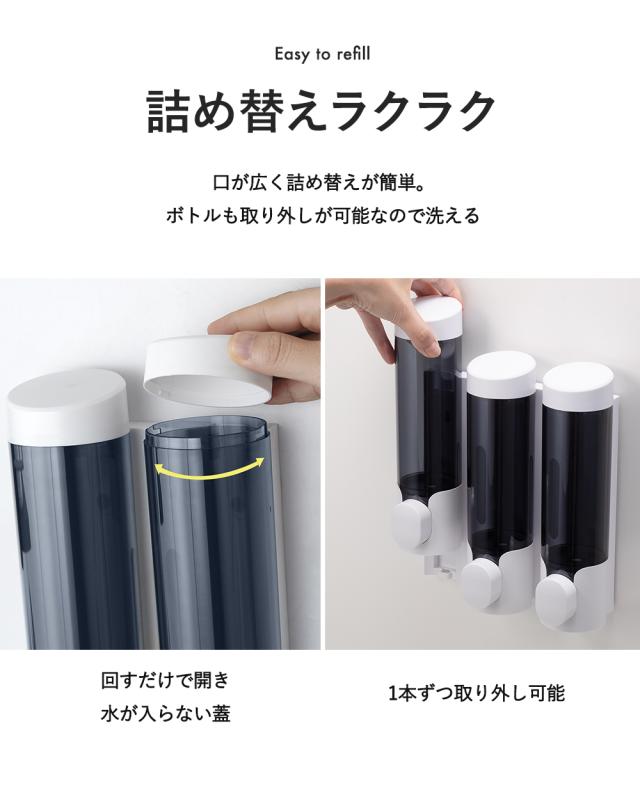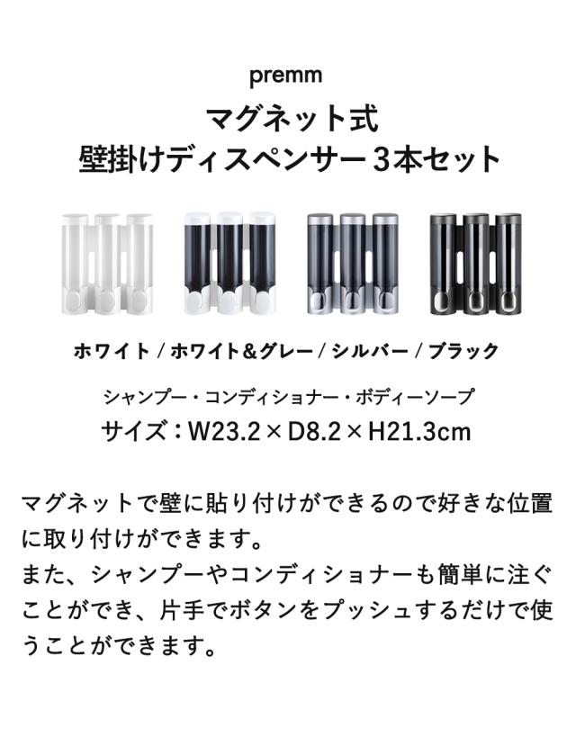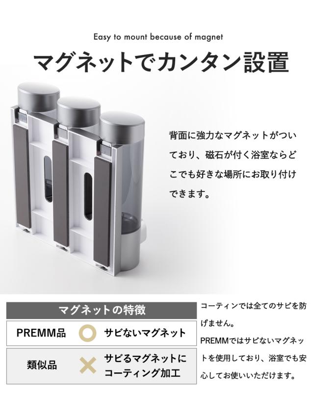 PREMM 公式 ディスペンサー マグネット 壁掛け シャンプーボトル シャンプーディスペンサー 大容量 ( 340ml x 3本) 【レビュー投稿で1年保証】【累計10万本突破!】