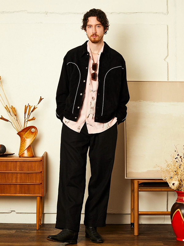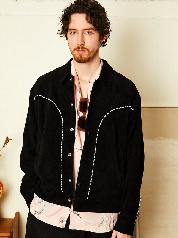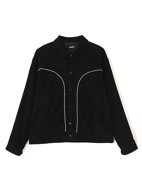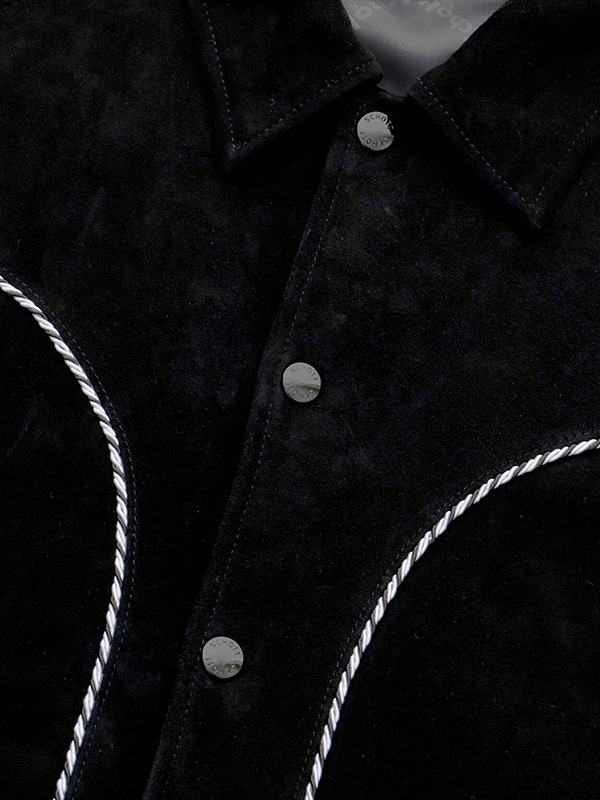 オリジナルのツイストテープを贅沢にあしらったゴートスウェードのウエスタンジャケット。