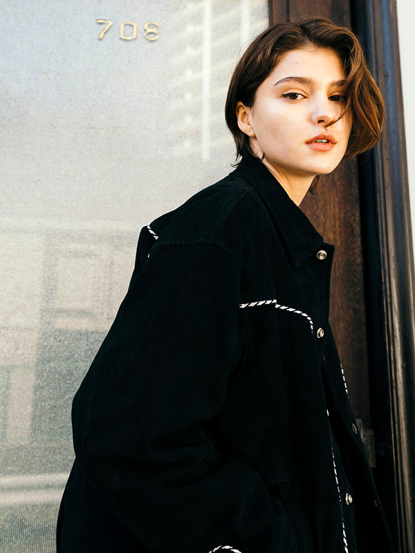 柔らかくしなやかなスウェードは、着用するほどに体に馴染み、スウェードならではの快適な着心地を実感できます。