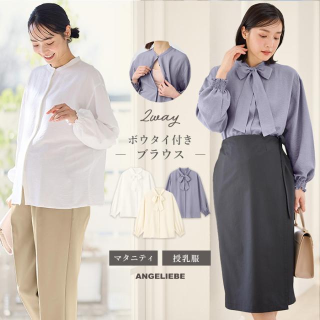 マタニティ 服 トップス 2WAY着用可 ボウタイ付きブラウス マタニティ・授乳服 出産後も長く使える 授乳服 妊婦服 長袖 オフィス