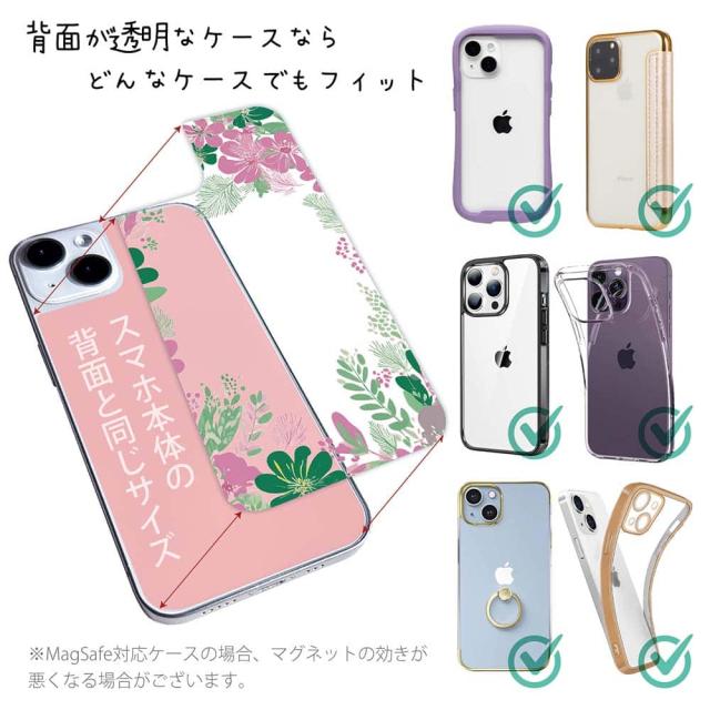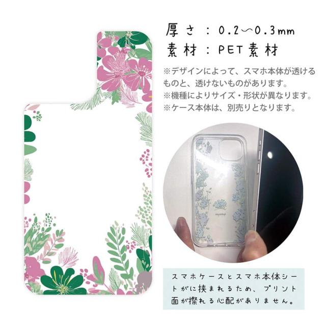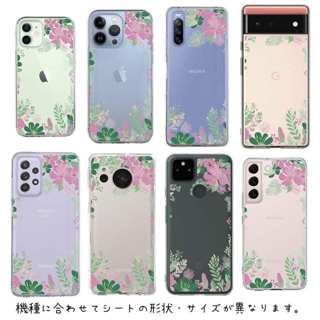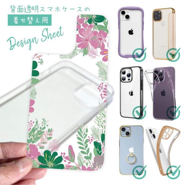 スマホケース iPhone Google Pixel Xperia Galaxy AQUOS arrows 着せ替え シート インナーシート スマホカバー 背面 透明 クリア オリジナル デザイン 花 花柄 北欧デザイン グリーン&ピンク