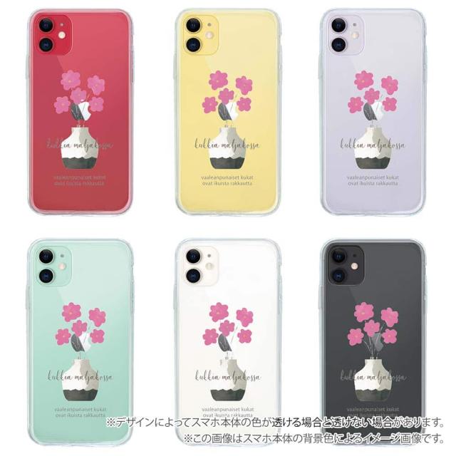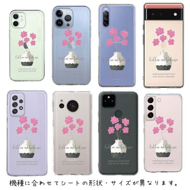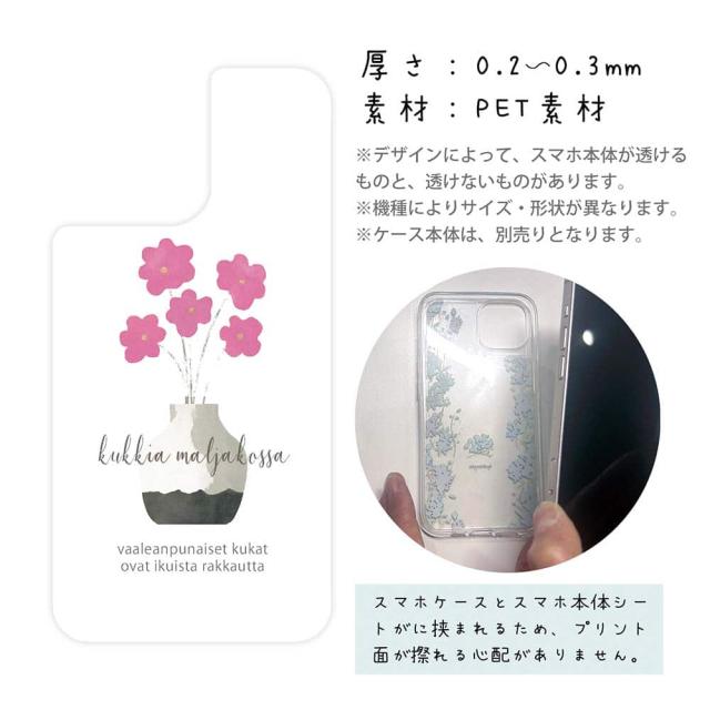 スマホケース iPhone Google Pixel Xperia Galaxy AQUOS arrows 着せ替え シート インナーシート スマホカバー 背面 透明 クリア オリジナル デザイン 花 花柄 北欧デザイン ピンクの花