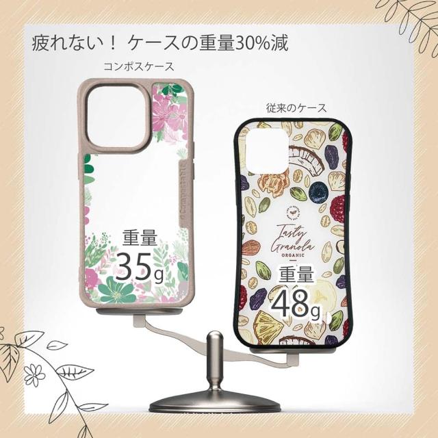 | 商品説明 | コンポスケースは、環境負荷低減を目的に開発されたスマホケース。従来のスマホケースと比べ、CO2排出量を50%削減できます。しかも、循環型社会に対応した素材を使ったケースです。 フレームカラーが4色からお選び頂けます。※コンポスケースとデザインシートが1つずつのセット商品となります。商品画像の15枚目と16枚目は、スマホの背景色によるサンプルです。ケース自体の背面は透明なので、スマホの背面色によってこのような色になるという例です。背景の色が選べる訳ではありませんので、予めご了承下さいませ。 ![]() |