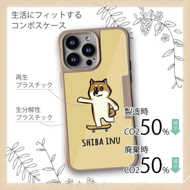 コンポスケース & 着せ替え デザインシート セット iPhone16e ケース iPhone16 Pro iPhone16 iPhone15 Pro iPhone15 iPhone14 Pro iPhone14 iPhone13 ワカボンド WAKAMAKAシリーズ 柴犬スケボー_赤柴
