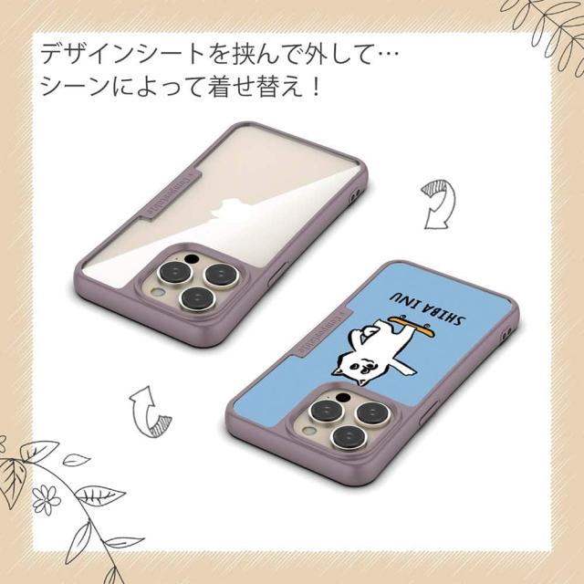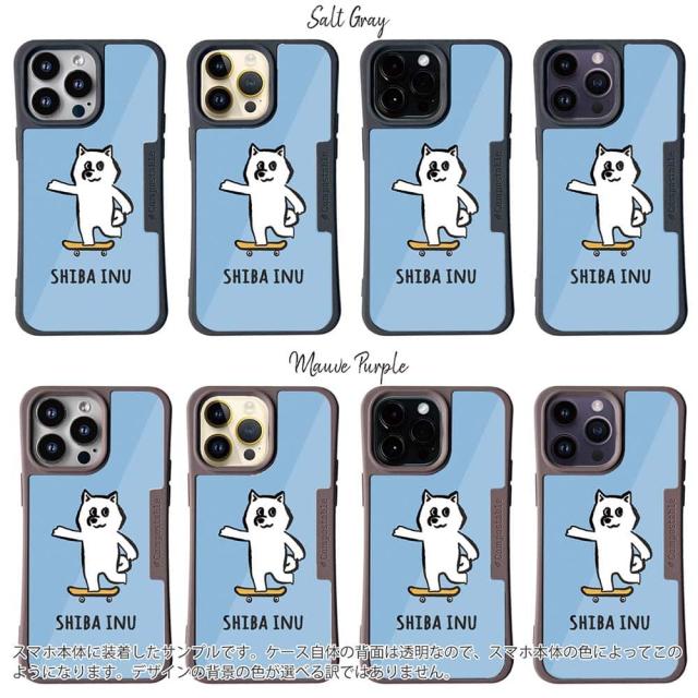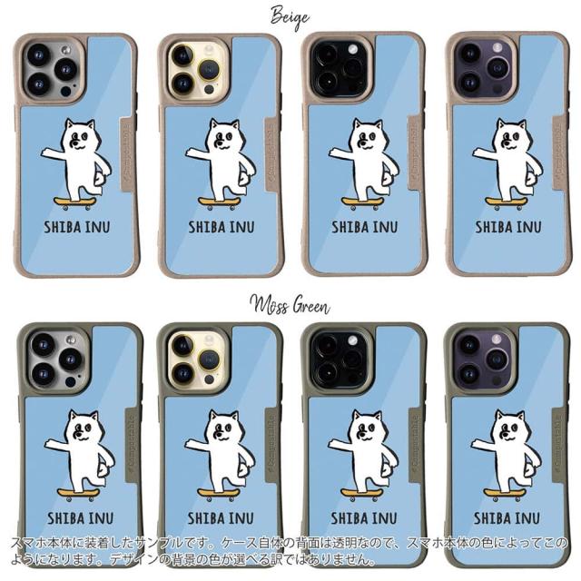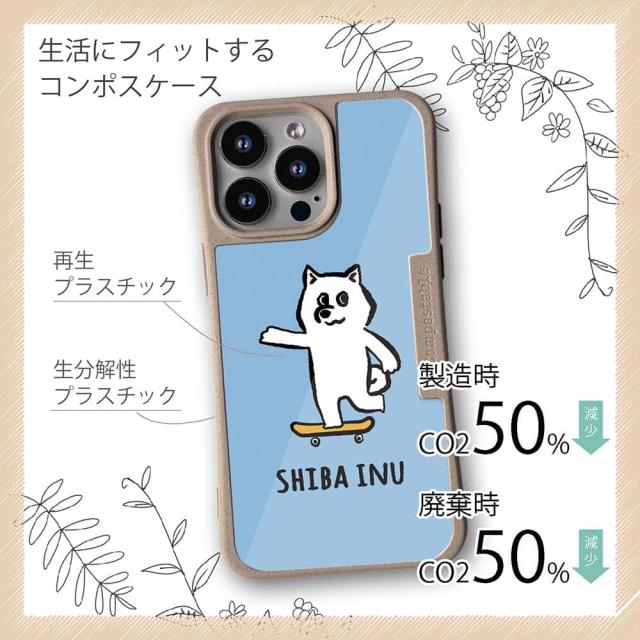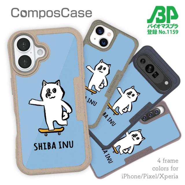 コンポスケース & 着せ替え デザインシート セット iPhone16e ケース iPhone16 Pro iPhone16 iPhone15 Pro iPhone15 iPhone14 Pro iPhone14 iPhone13 ワカボンド WAKAMAKAシリーズ 柴犬スケボー_白柴