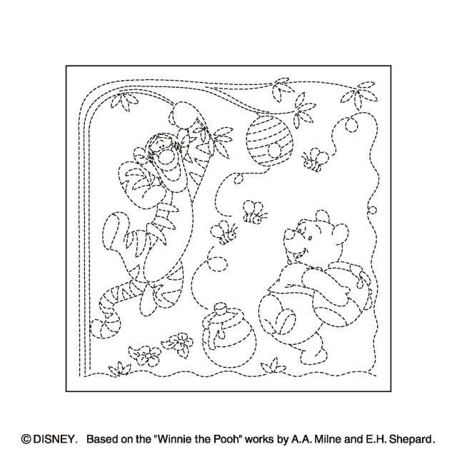 オリムパス 刺し子 sashiko 花ふきん 花ふきん布パック ディズニー ピクサー H-1129 プー&ティガー 白 水で消える図案入り