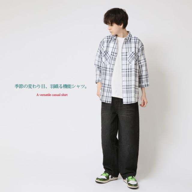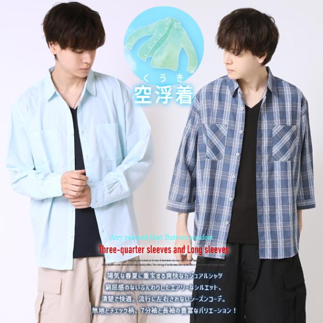 パナマシャツ メンズ 長袖シャツ 春夏 新作 七分袖シャツ 無地 チェックシャツ 空浮着シャツ 軽量 速乾 通気性 サマーシャツ