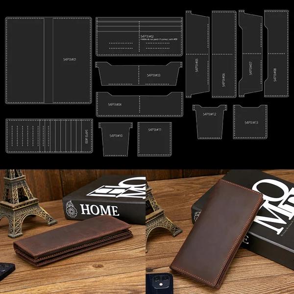 Yomded-ロングウォレットアクリルテンプレート、DIYレザーパターンモールド、ハンドクラフトウォレットツール、ステンシルアクセサリー、セットあたり13個