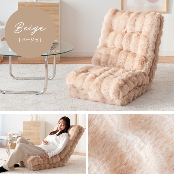 14段階リクライニングでお好みの角度に調整可能。カラーはホワイト、ベージュ、ピンク、グレーの4種類。お部屋の雰囲気やお好みでお選びいただけます。