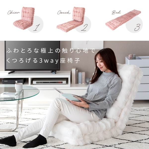 ふわとろ3way座椅子 もこもこ座椅子 リクライニング ベッド カウチソファ おしゃれ 椅子 イス フロア チェアー 座イス チェア ゆったり 座椅子 リクライニングチェアー フロアチェア リビングチェア かわいい おうち時間 変形 伸びる