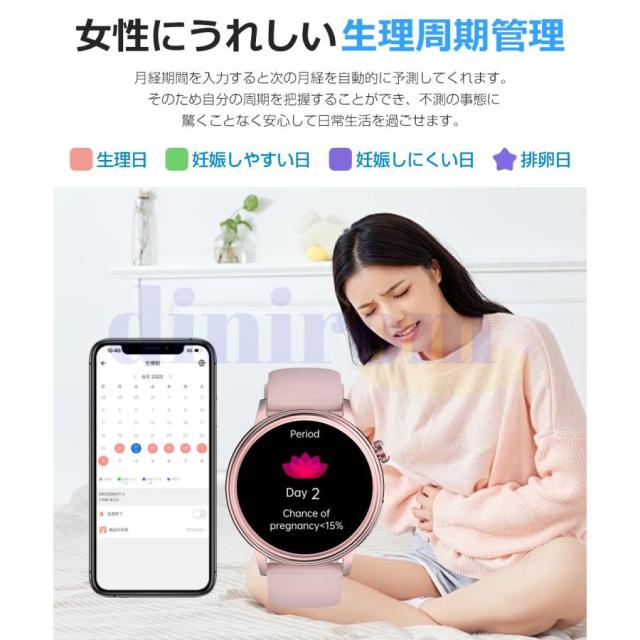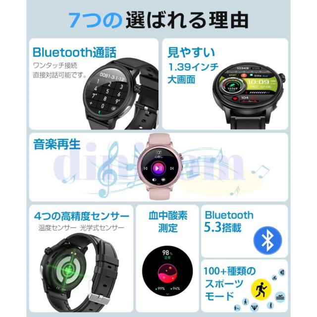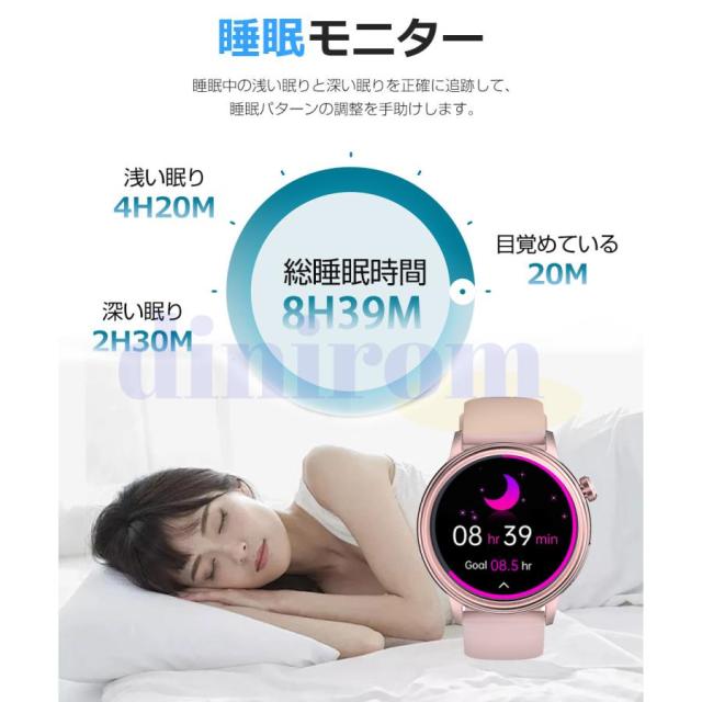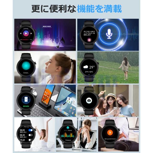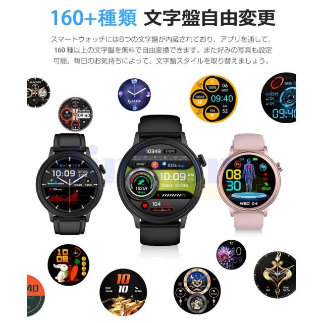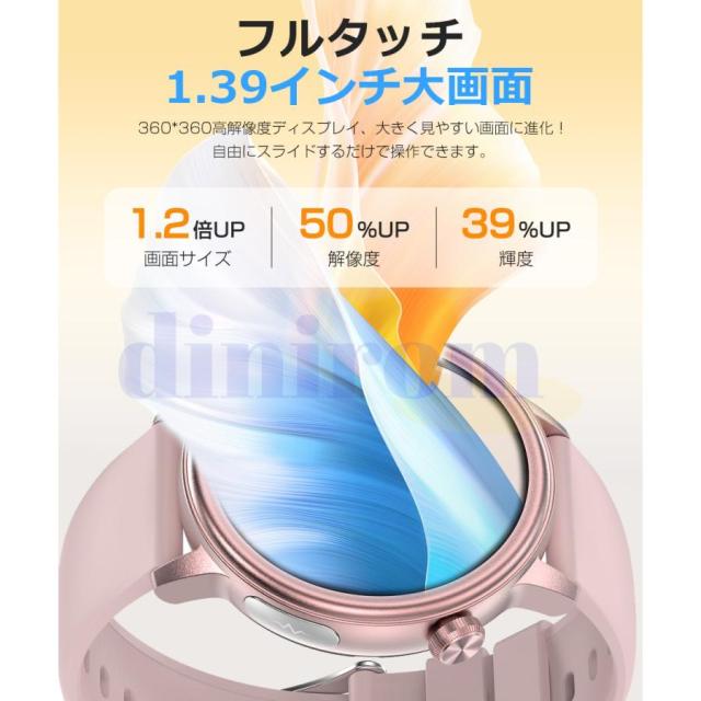 【DIY文字盤&多機能を搭載】- スマートウォッチの文字盤は固定ではありません。多くの文字盤から選べるだけではなく、お好みによって自分が好きな写真を文字盤に設定できます。 360* 360の高解像度と1.39インチのフルタッチスクリーンで、細かい文字でもはっきりと表示されます。他にも音楽コントロール、携帯を探す、腕上げ点灯、タイマー、ストップウォッチ、データ同期、女性生理管理など便利な機能を備えているので、男性でも女性でも使いやすいです!!生活、仕事の効率をさらに上げ、日常生活もより便利にしてくれます。