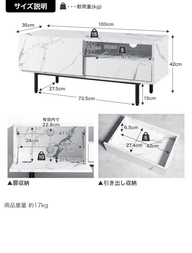 ★国内メーカー保証付★ 大理石柄テレビ台 2Way ディスプレイ棚としても 幅100cm 背面コード穴 3種類収納 おしゃれ メーカー直送 送料無料