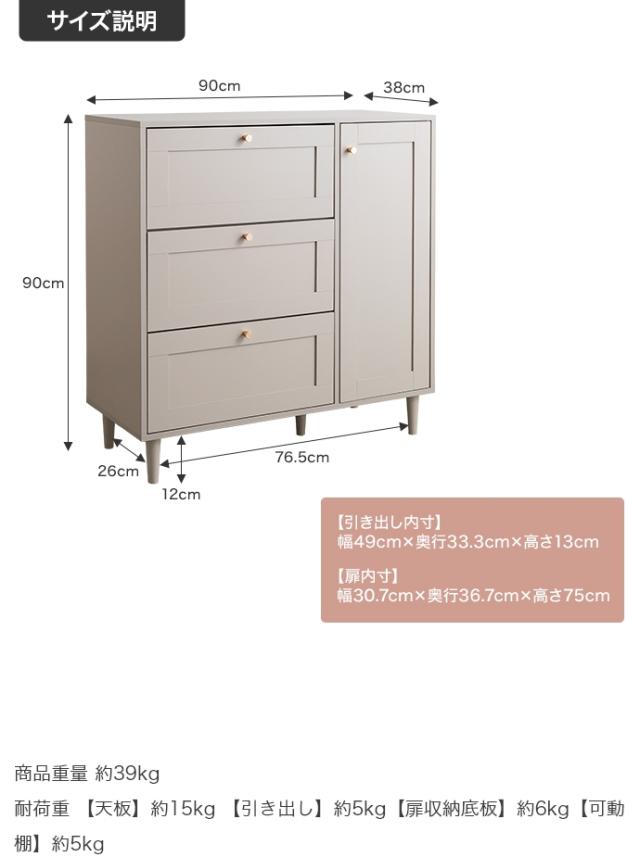 天板)約15kg 引き出し)約5kg 扉収納底板)約6kg 可動棚)約5kg