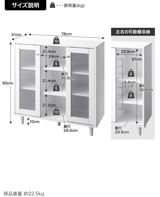 ★耐荷重 天板)約10kg 中央収納棚)各約5kg 左右収納可動棚)各約5kg 底板)約10kg