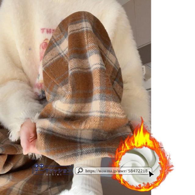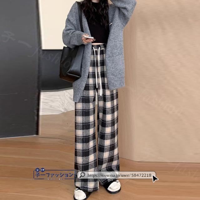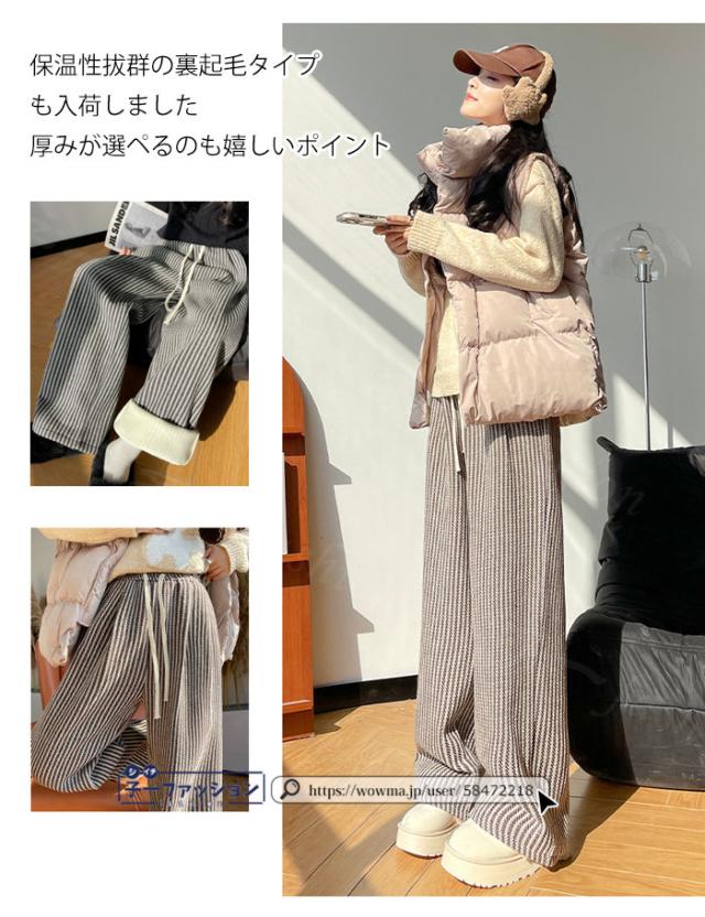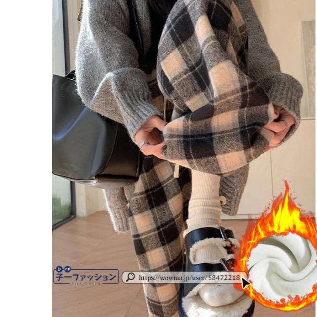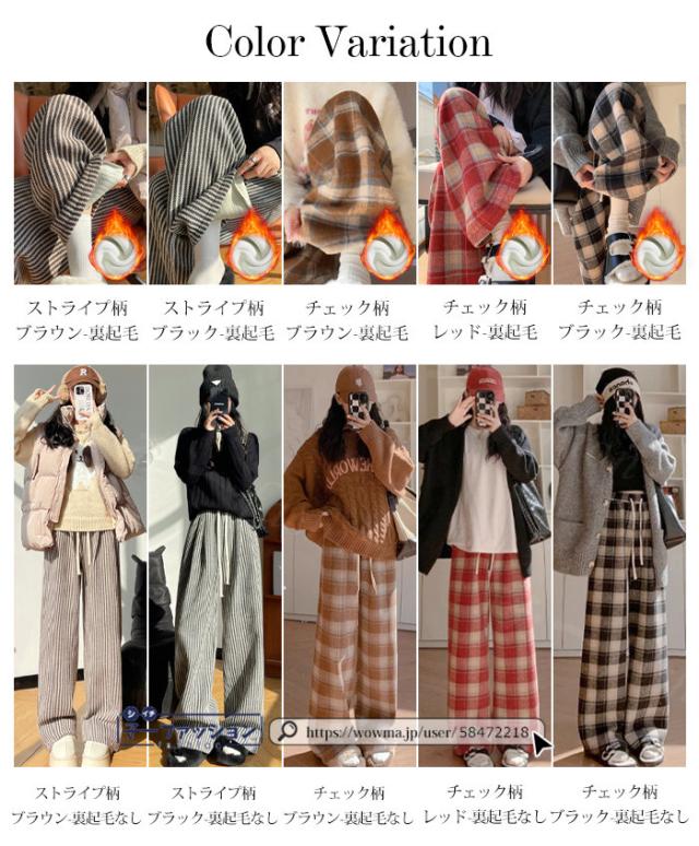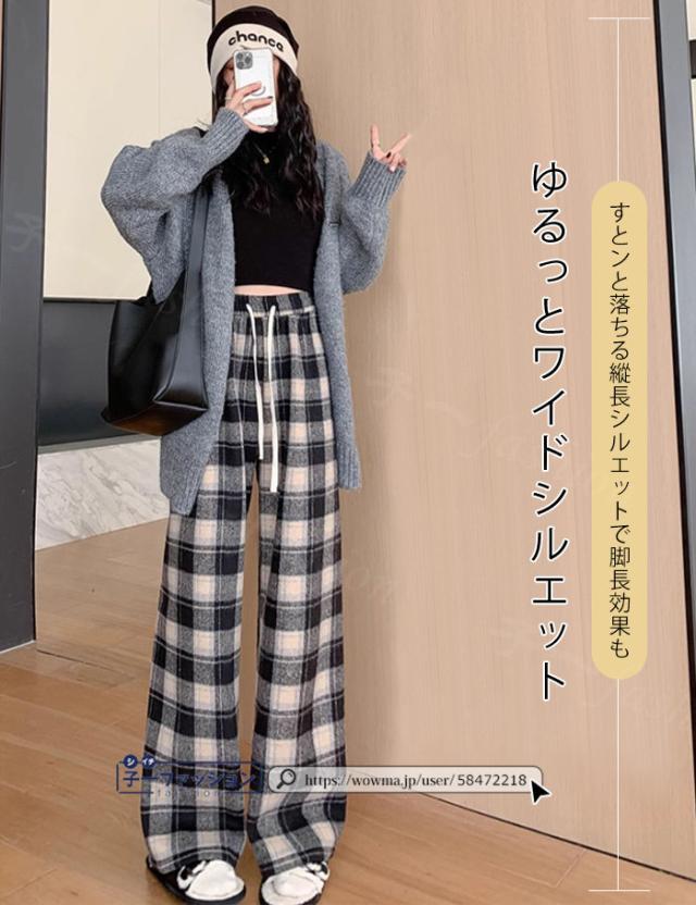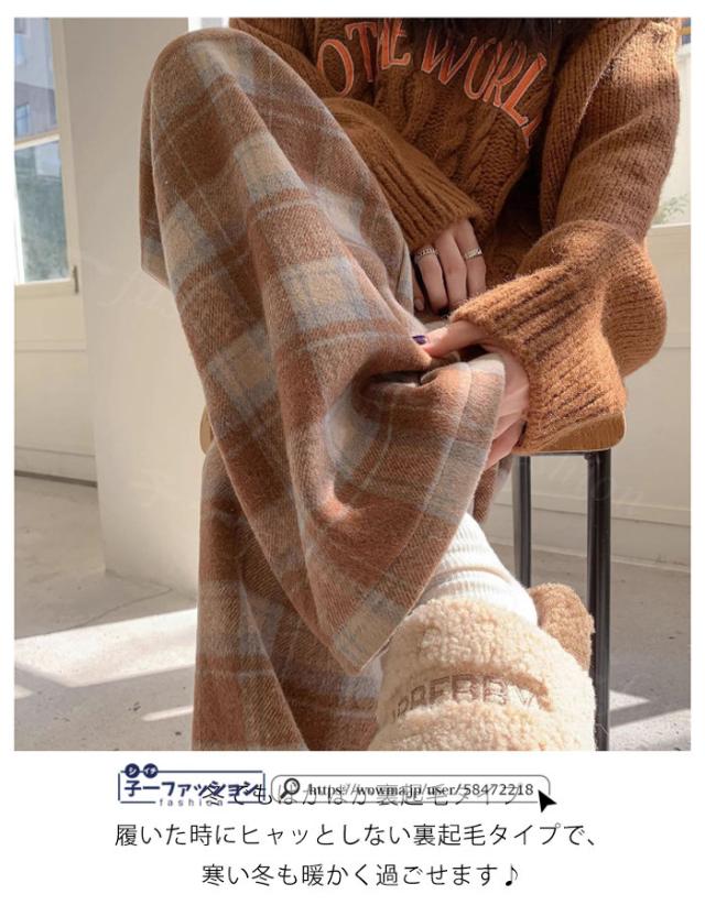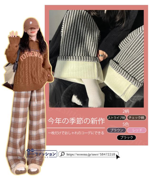 チェック パンツ 2type 冬新作 新作 レディース ワイドパンツ ガウチョパンツ 裏起毛 パンツ チェック柄 ストライプ ワイド ガウチョ 大きいサイズ ロングパンツ ストレートパンツ ボトムス 秋 冬 ウエストゴム きれいめ カジュアル 秋冬