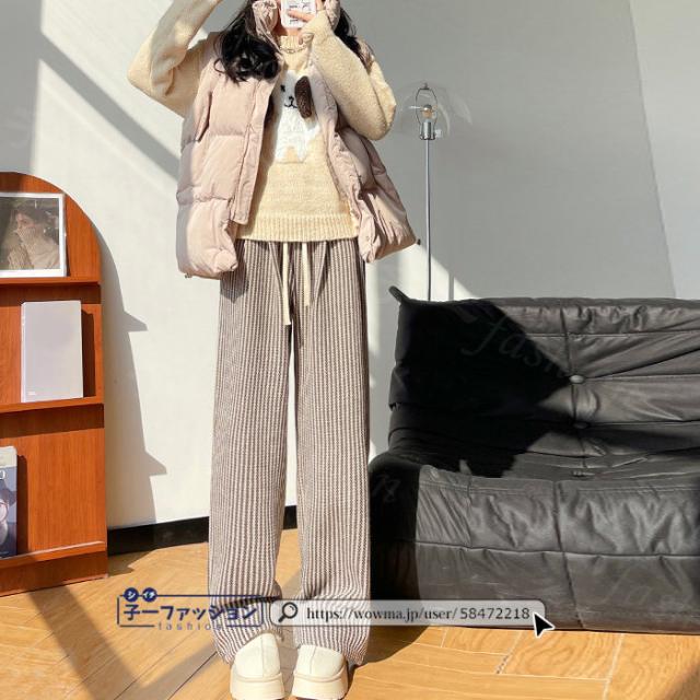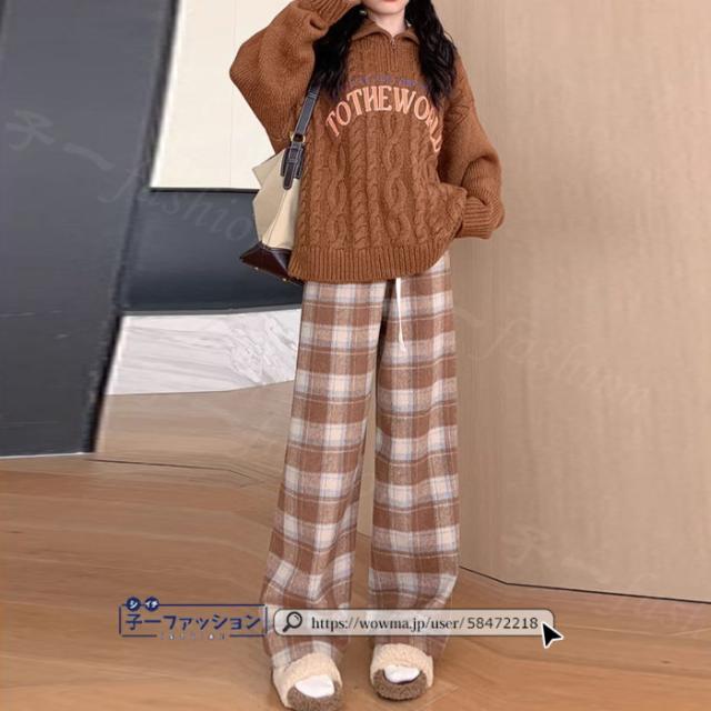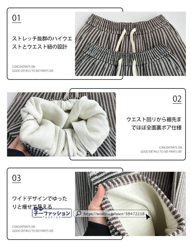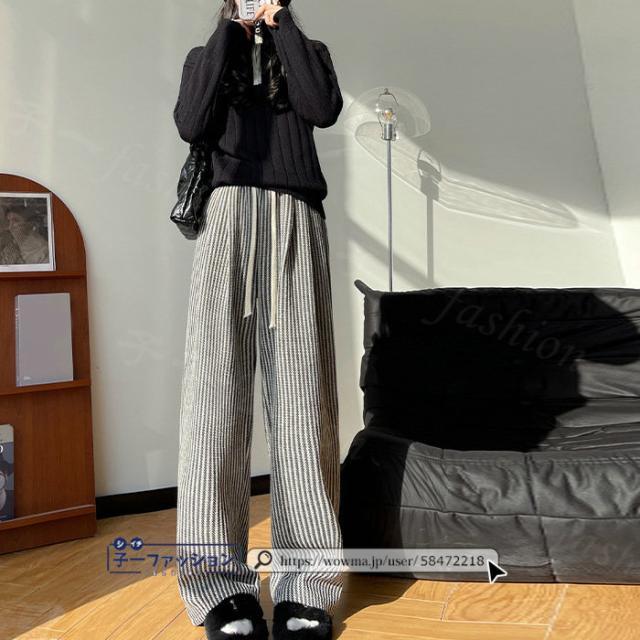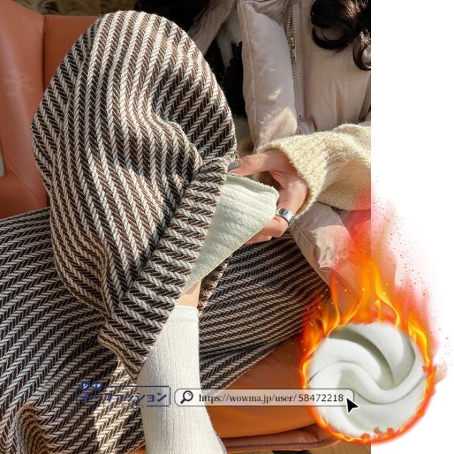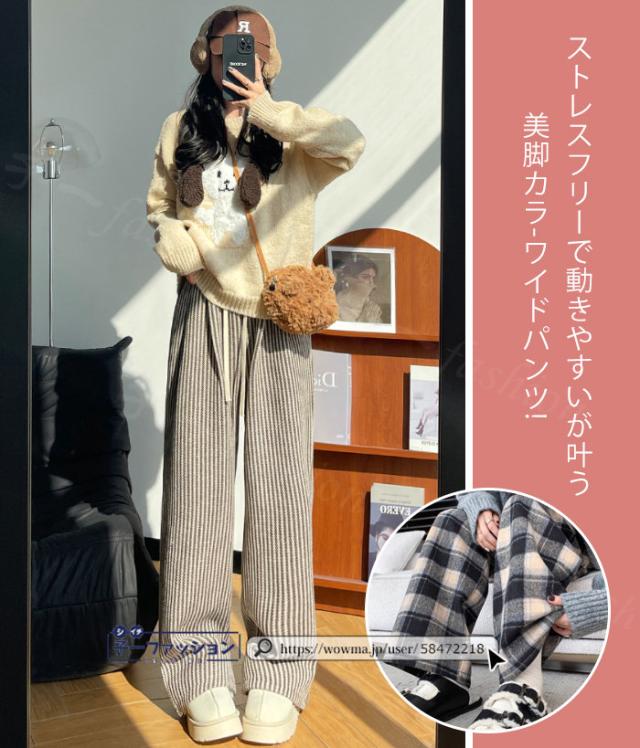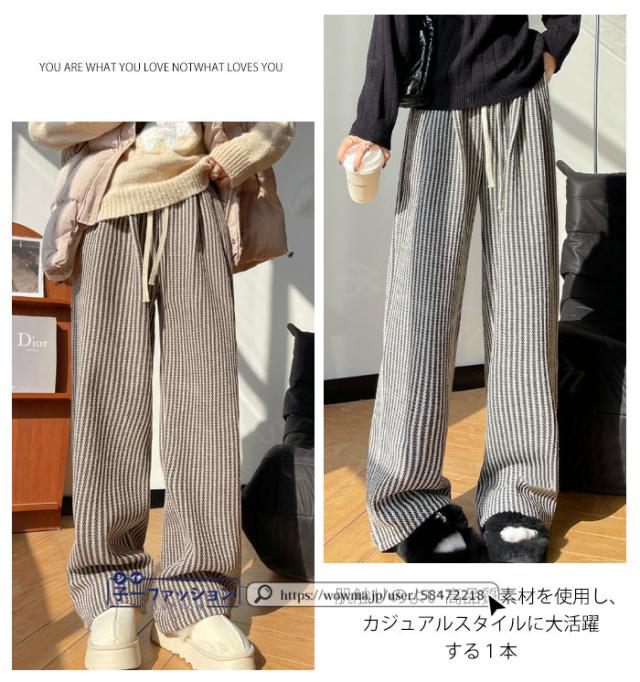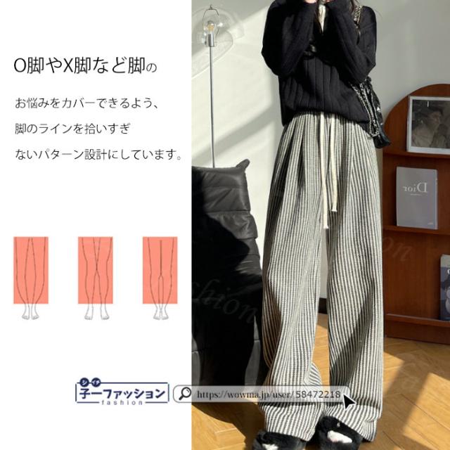 チェック パンツ 2type 冬新作 新作 レディース ワイドパンツ ガウチョパンツ 裏起毛 パンツ チェック柄 ストライプ ワイド ガウチョ 大きいサイズ ロングパンツ ストレートパンツ ボトムス 秋 冬 ウエストゴム きれいめ カジュアル 秋冬