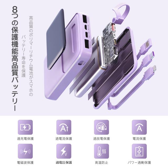 日本の電気用品安全法お技術基準に合格した安全性の高いモバイルバッテリーです。また、このバッテリーは安全設計が施されています。軽荷重保護、過電流保護、短絡保護、過充電保護、過熱保護、低電圧保護等の6つ安心の回路設計を備えました。
