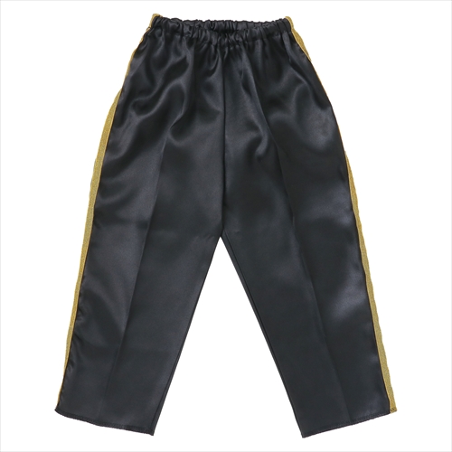 キラキラのラインが入った、すっきりシルエットのテーパードズボンです。演技やダンスなどの衣装に!サテン生地で、肌触りが良く、光沢のある素材です。