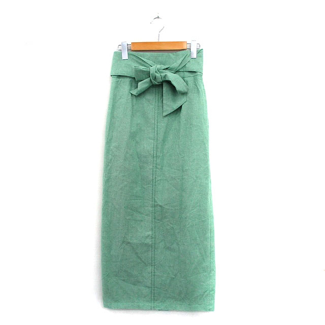 【中古】ラグナムーン LagunaMoon タイトスカート ロング リボン コットン シンプル M グリーン 緑 /KT19 レディース