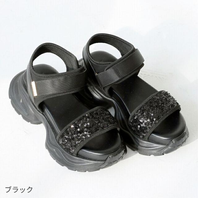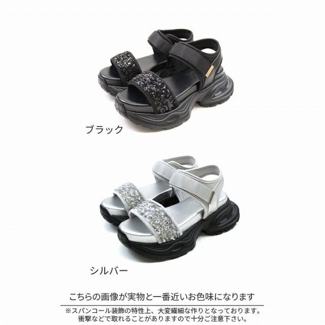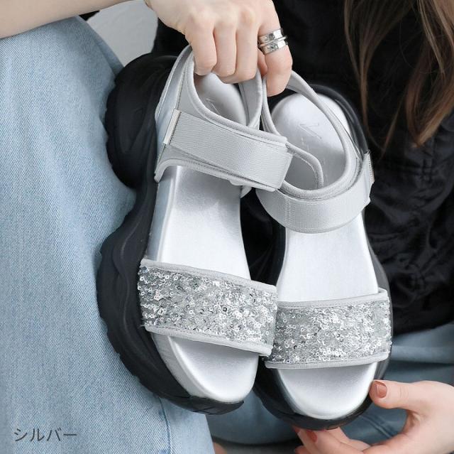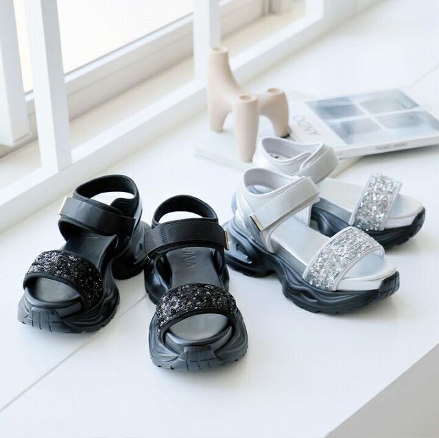 【MAX20%OFFクーポン】 サンダル レディース 夏新作 VIVIAN 厚底サンダル 厚底 スポーツサンダル スポサン スパンコール アンクル ストラップ ブラック 黒 シルバー メタリック 旅行 レジャー ライブ マジックテープ ベルクロ V36001SM