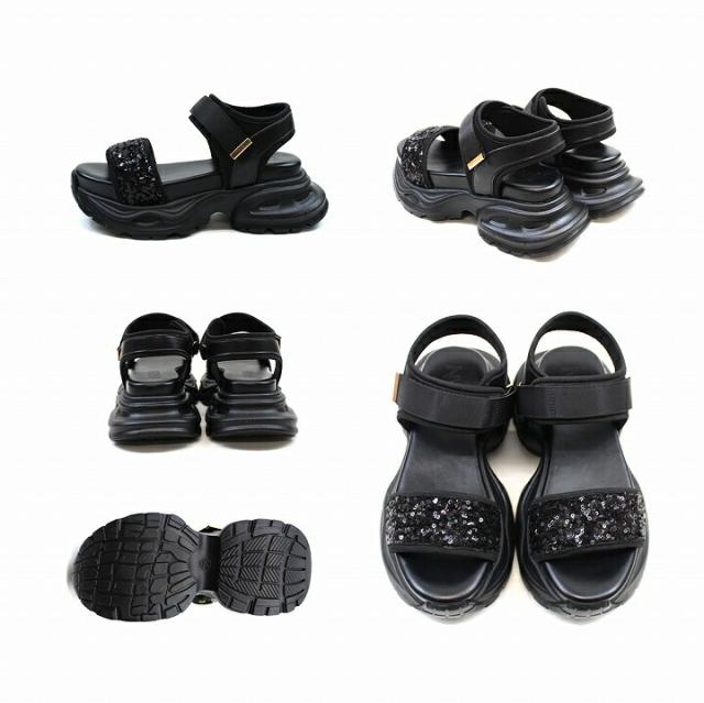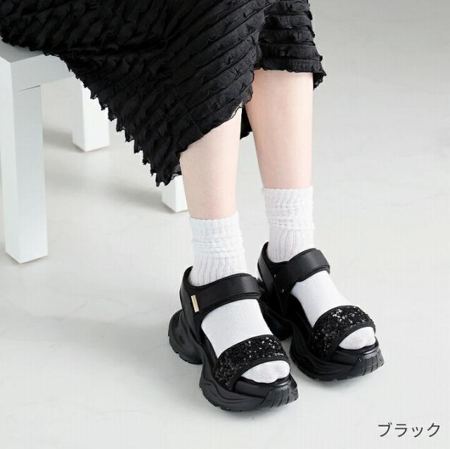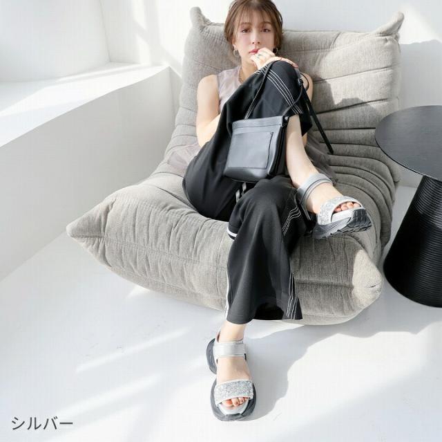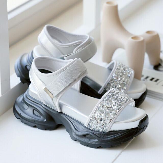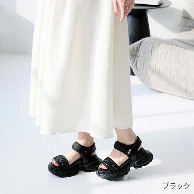 厚底グリッターベルクロスポーツサンダル