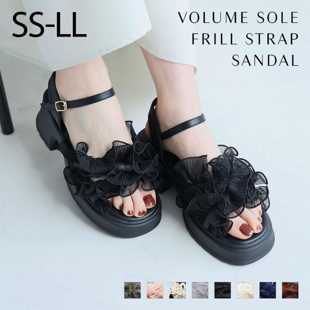 【MAX20%OFFクーポン】 サンダル レディース 夏新作 厚底サンダル 6.5cm 厚底 フリル チュール シアー 透け アンクル ストラップ ブラック 黒 アイボリー 白 グレー 旅行 テーマパーク V57004SM