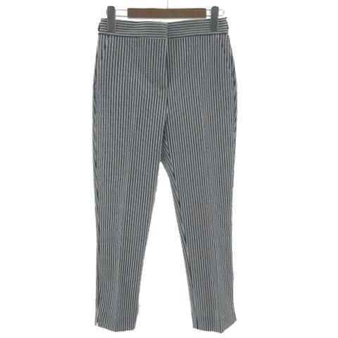 【中古】ザラ ZARA パンツ テーパード シアサッカー 裾スリット ウエストゴム コットン混 ストライプ 白 紺 XS