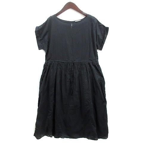 【中古】スタディオクリップ Studio Clip コットンボイル ロング ワンピース 半袖 ウエストシャーリング チャコールグレー M レディース
