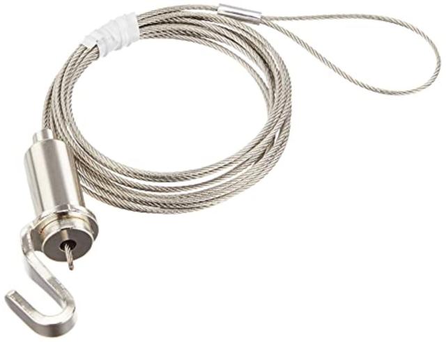 フック形状の自在金具とワイヤーがセットになった吊下げ金具です。 額、ポスター等を好きな高さに簡単に移動させることが可能です。 上下の移動はピンを押すだけ!無段階で位置調節が可能です。