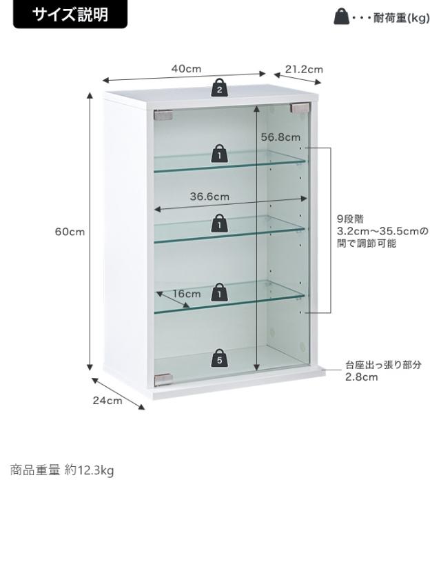 ★メーカー保証付★ 卓上コレクションケース 縦型 幅40cm×高さ60cm 強化ガラス ガラス板 メーカー直送 送料無料