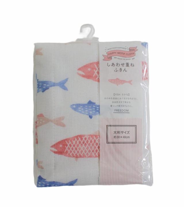 藤栄(FUJIEI) ハッピーモチーフ しあわせ重ね ふきん さかな 大判 30×40cm KF-011 キッチン テーブル 食器 食器用 洗える 台ふきん ダス