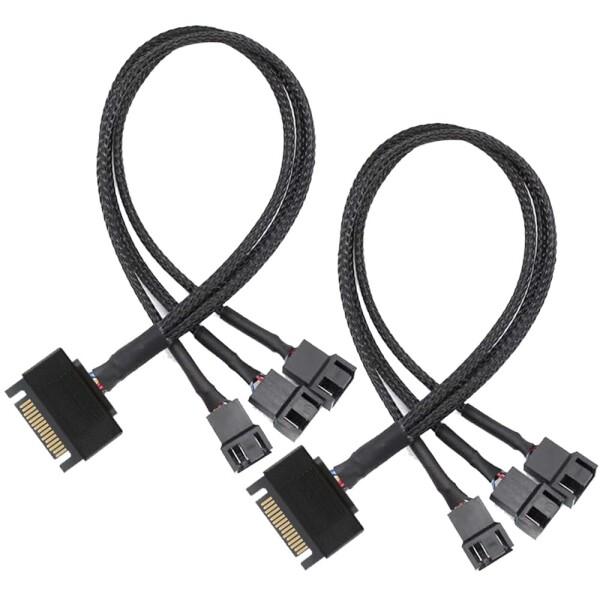Kiligen 2個 SATA から 3 ウェイ 3 ピン / 4 ピン PMW 12V PC ケースファン電源アダプタケーブル、3 ピンまたは 4 ピン (PWM コネクタ) から 15 ピン SATA コンピュータクーラー冷却ファン電源ケーブル