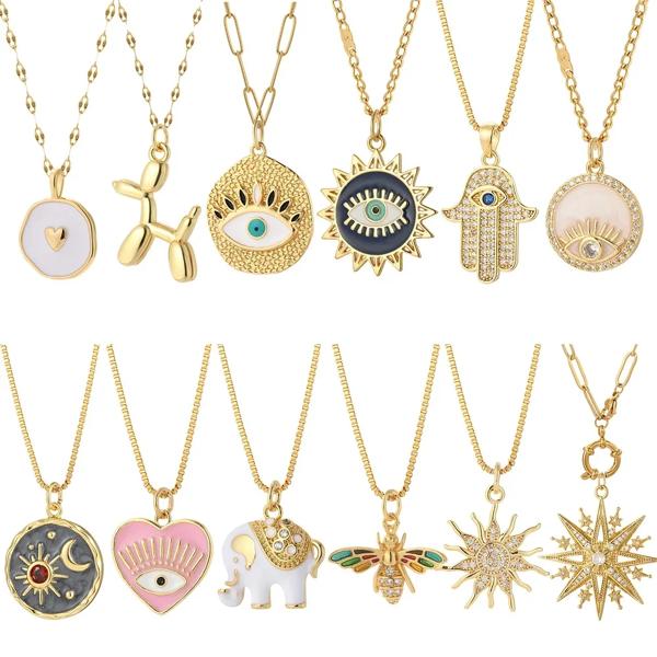 ハート悪太陽のネックレス、かわいい犬ハチ象ゴールドカラーペンダント、ロングステンレス鋼チェーン