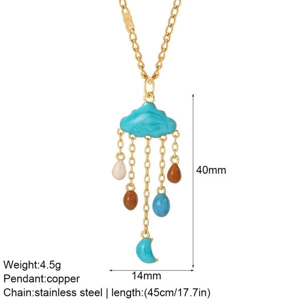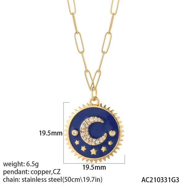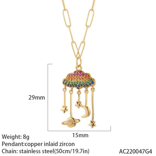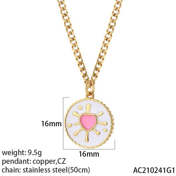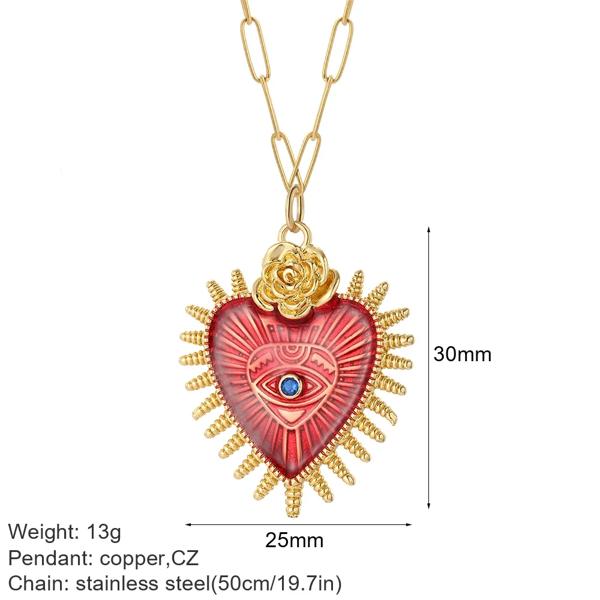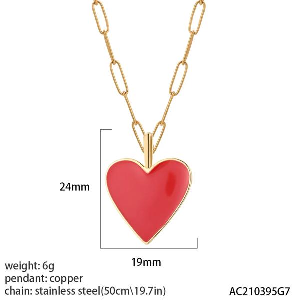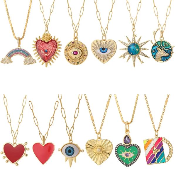 ハートと月の形をした色付きネックレス,ゴールドとシルバーのカラージュエリー,赤い愛のペンダント