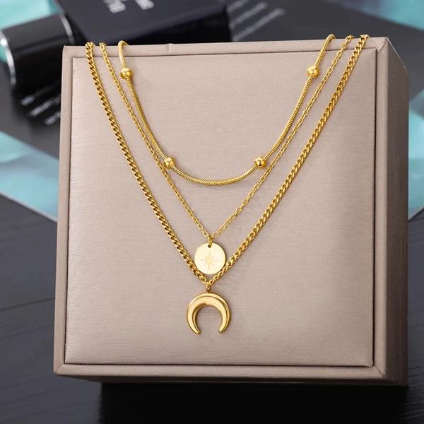 ネックレスとマルチレイヤーペンダント,ステンレス鋼,幾何学的スター,ネックレス,女性用,ウェディングアクセサリー,ドロップシッピング