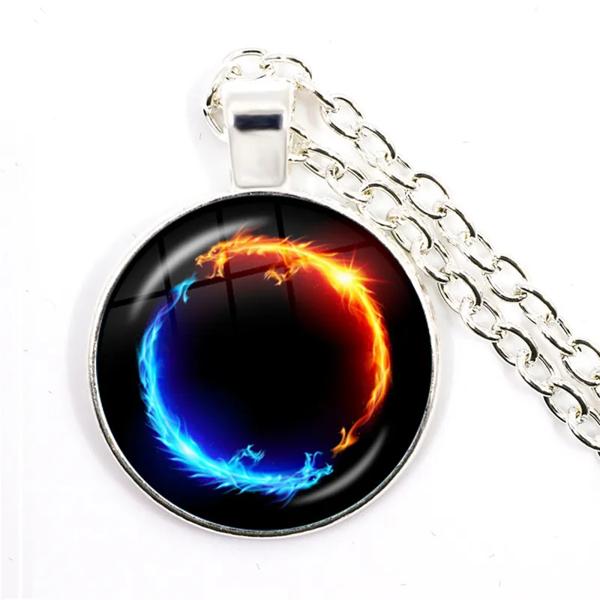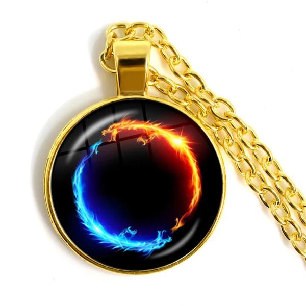 イミテーションネックレスユニセックスネックレス,ガラスカボション,ペンダント,ドラゴンムーン,ラインストーン,ジュエリーギフト