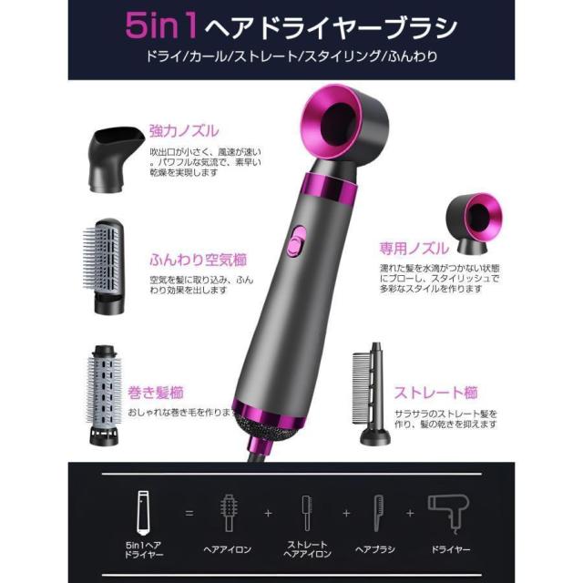 ドライヤー 【5in1多機能】 大風量 速乾 ヘアドライヤー 1200W おすすめ 冷熱風 ヘアケア 3段階調節 マイナスイオン 過熱保護 高級 家庭用 出張 旅行用