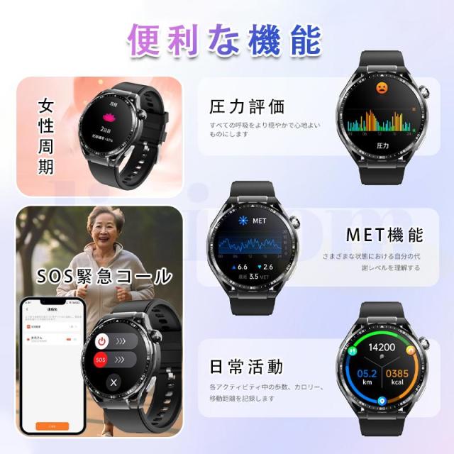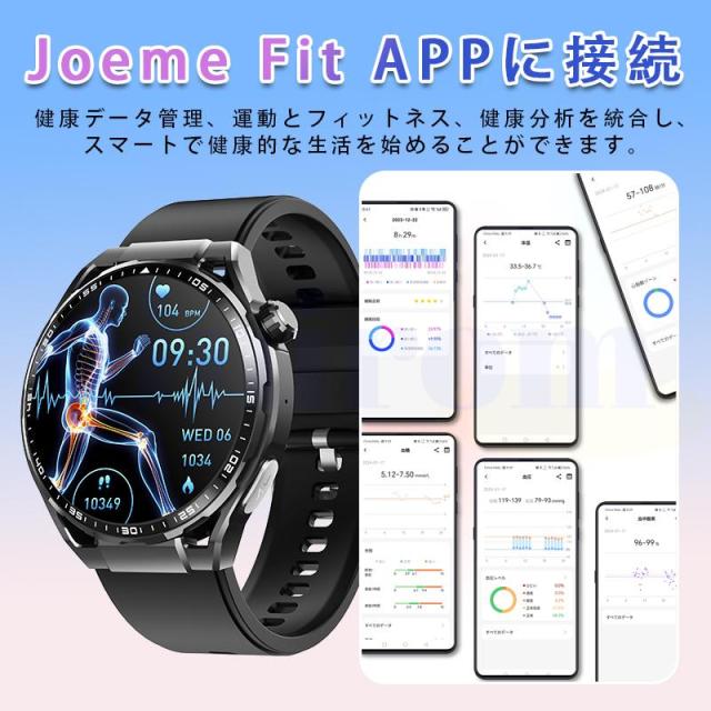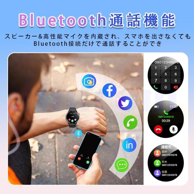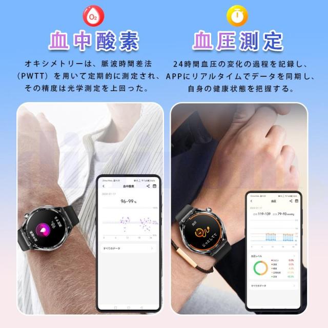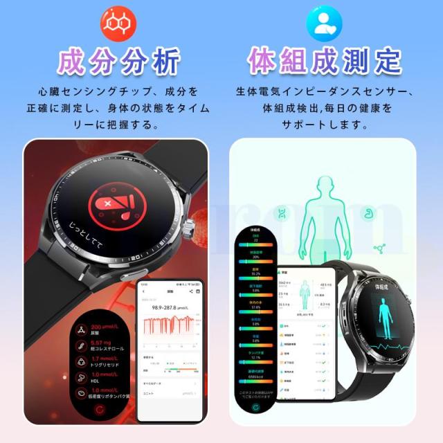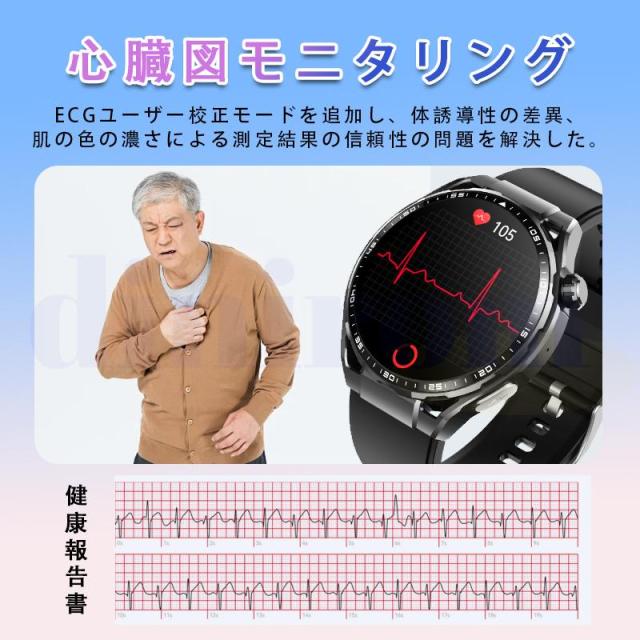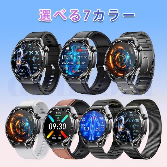 スマートウォッチ 血圧測定 心電図 心拍数 血中酸素 尿酸 血中脂質 24時間健康管理 体温測定 通話機能 睡眠 着信通知 歩数計 音楽?カメラ制御 天気予報