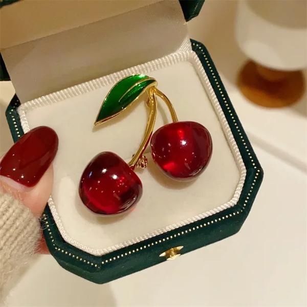 女性用エナメルクリスタルチェリーブローチ,赤いフルーツのピン,素敵なオフィスパーティー,カジュアルアクセサリー,ギフト