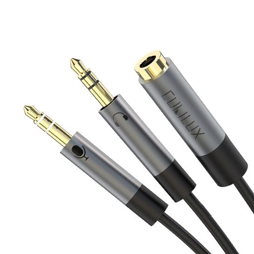 CUBILUX 3.5MMイヤホン2分配器、4極(TRRS)(CTIA)メス3極(TRS)オスイヤホン マイク変換アダプタ、ヘッドフォン端子分岐スプリッター、PC、パソコ、コンピュータに対応、25CM